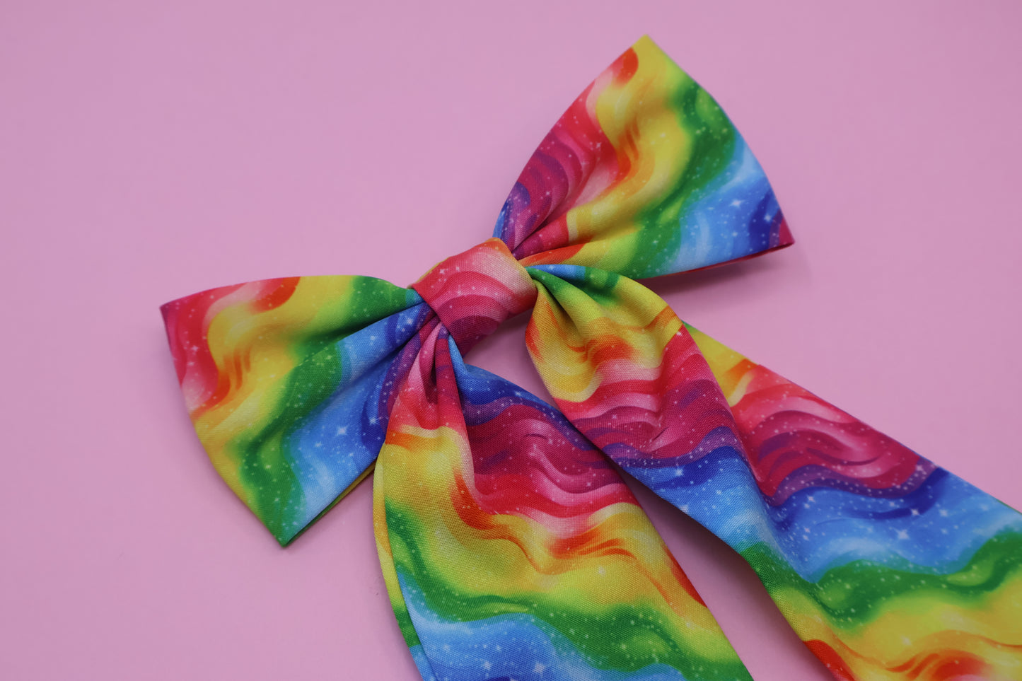 Bright Rainbow Wavy Stripe Medium Coquette Bow (Alligator Clip Only)