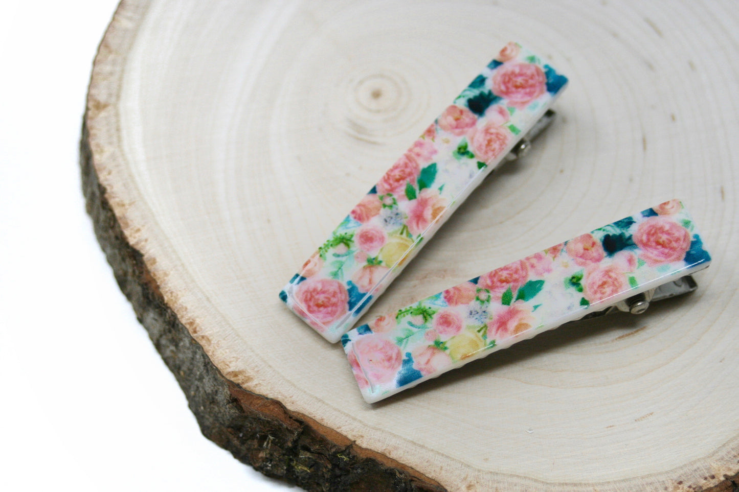 These printed acrylic clips are great for sweet and simple styling, or for sweeping baby hairs to the side.