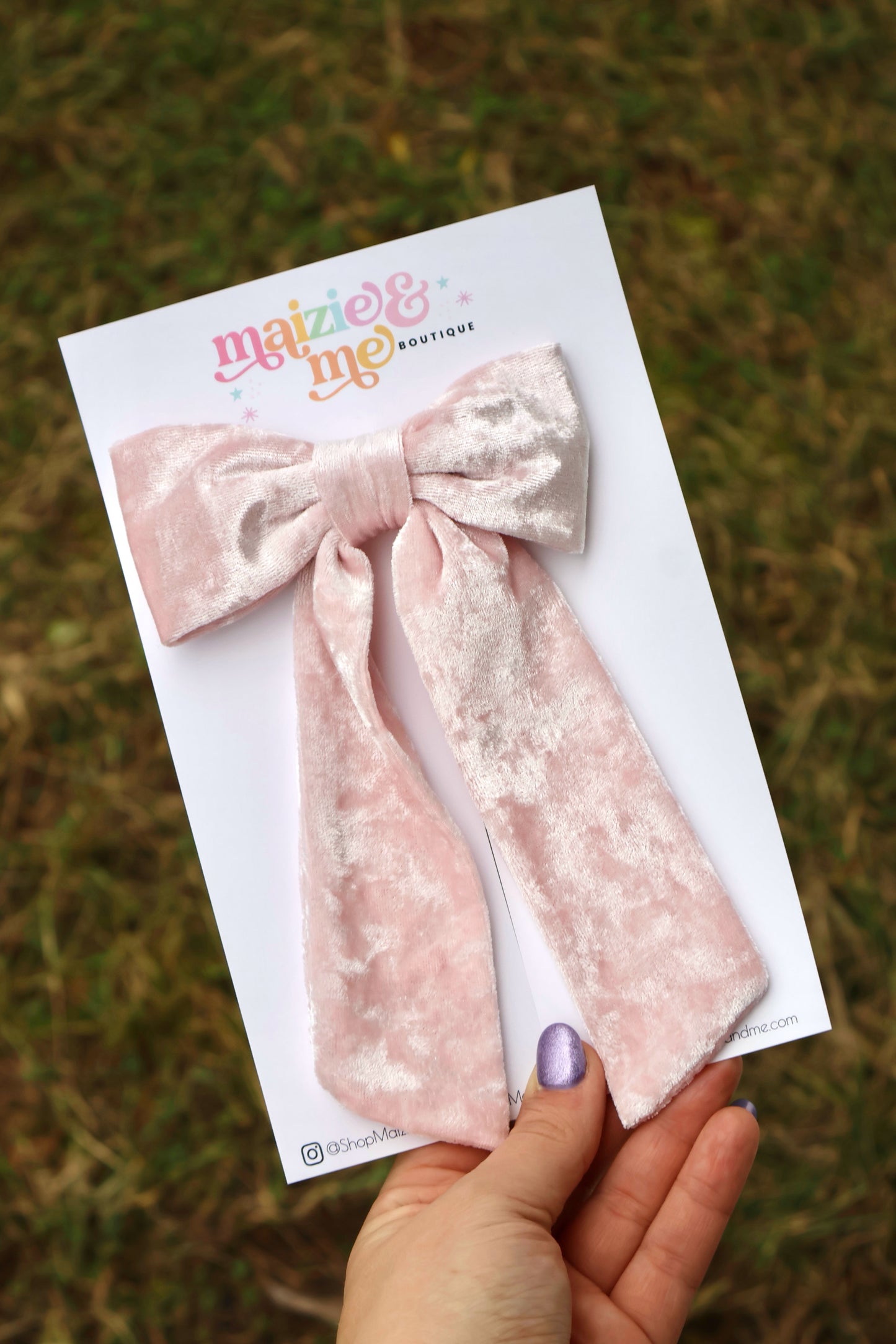 Ballet Pink Crushed Velvet Medium Coquette Bow (Alligator Clip Only)