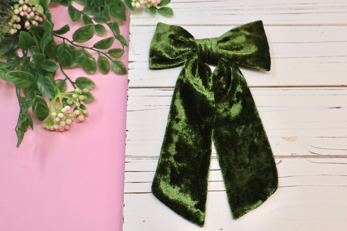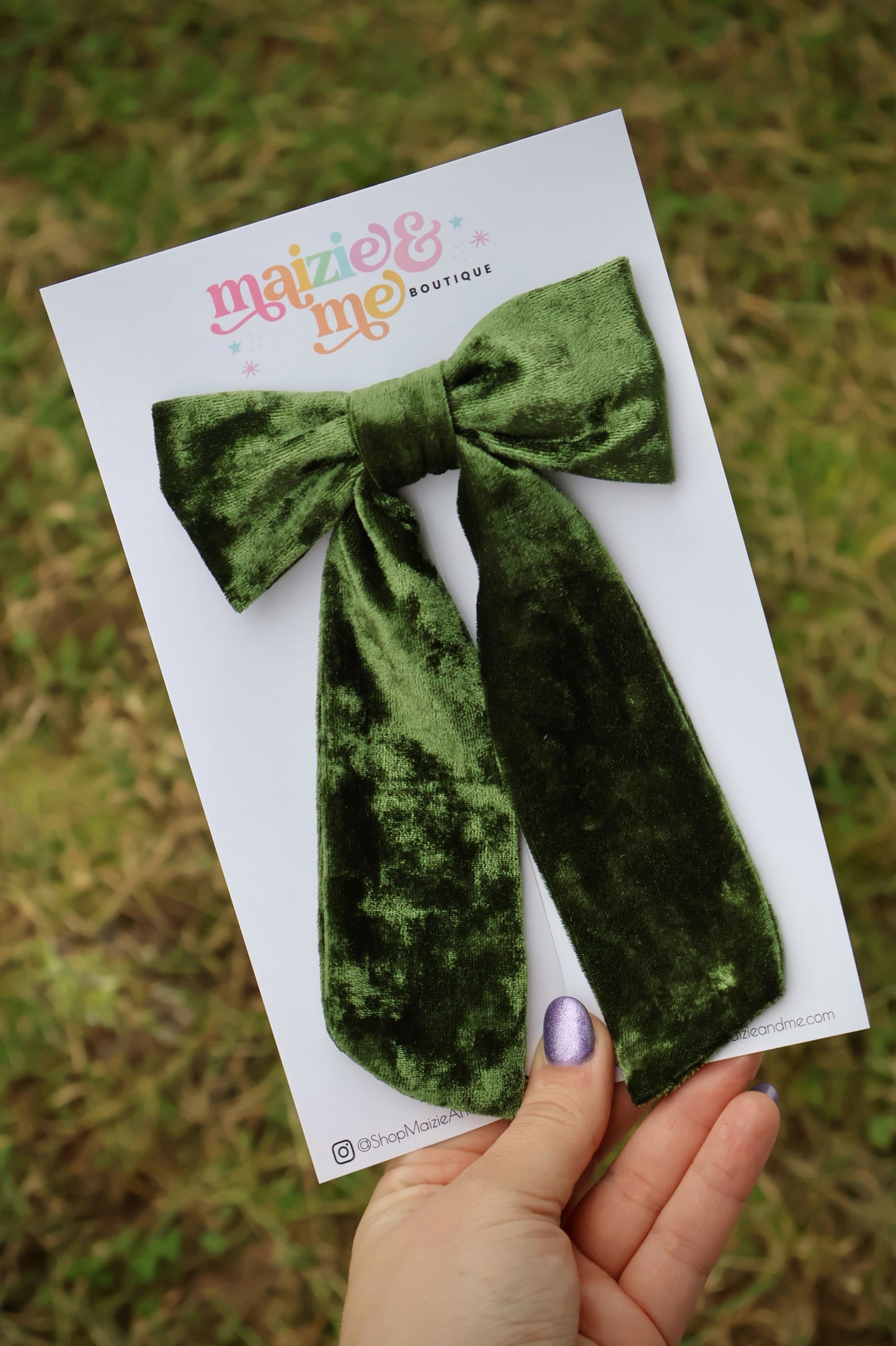 Deep Moss Crushed Velvet Medium Coquette Bow (Alligator Clip Only)