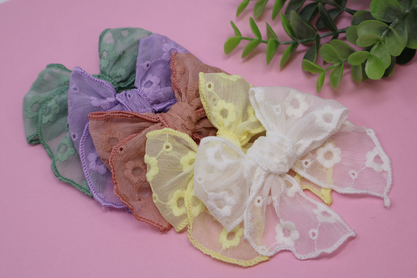 Embroidered Floral Chiffon Medium Remi Bow