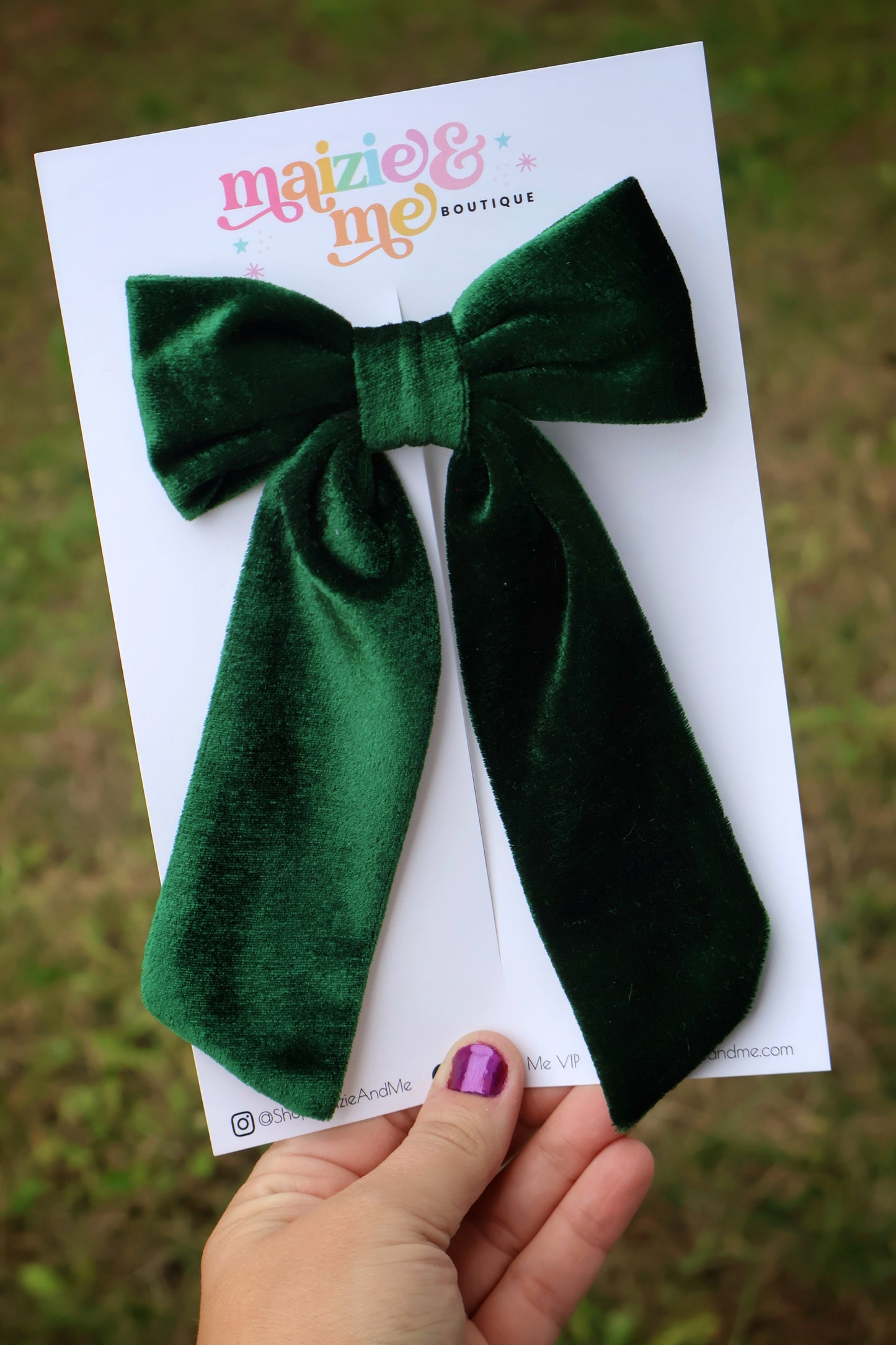 Evergreen Velvet Medium Coquette Bow (Alligator Clip Only)