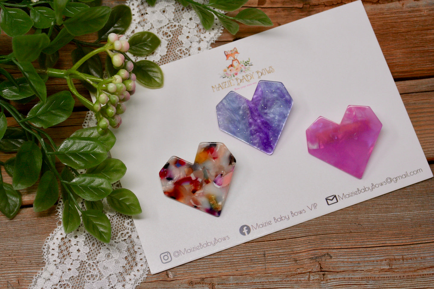 These heart acrylic clips are great for sweet and simple styling, or for sweeping baby hairs to the side.