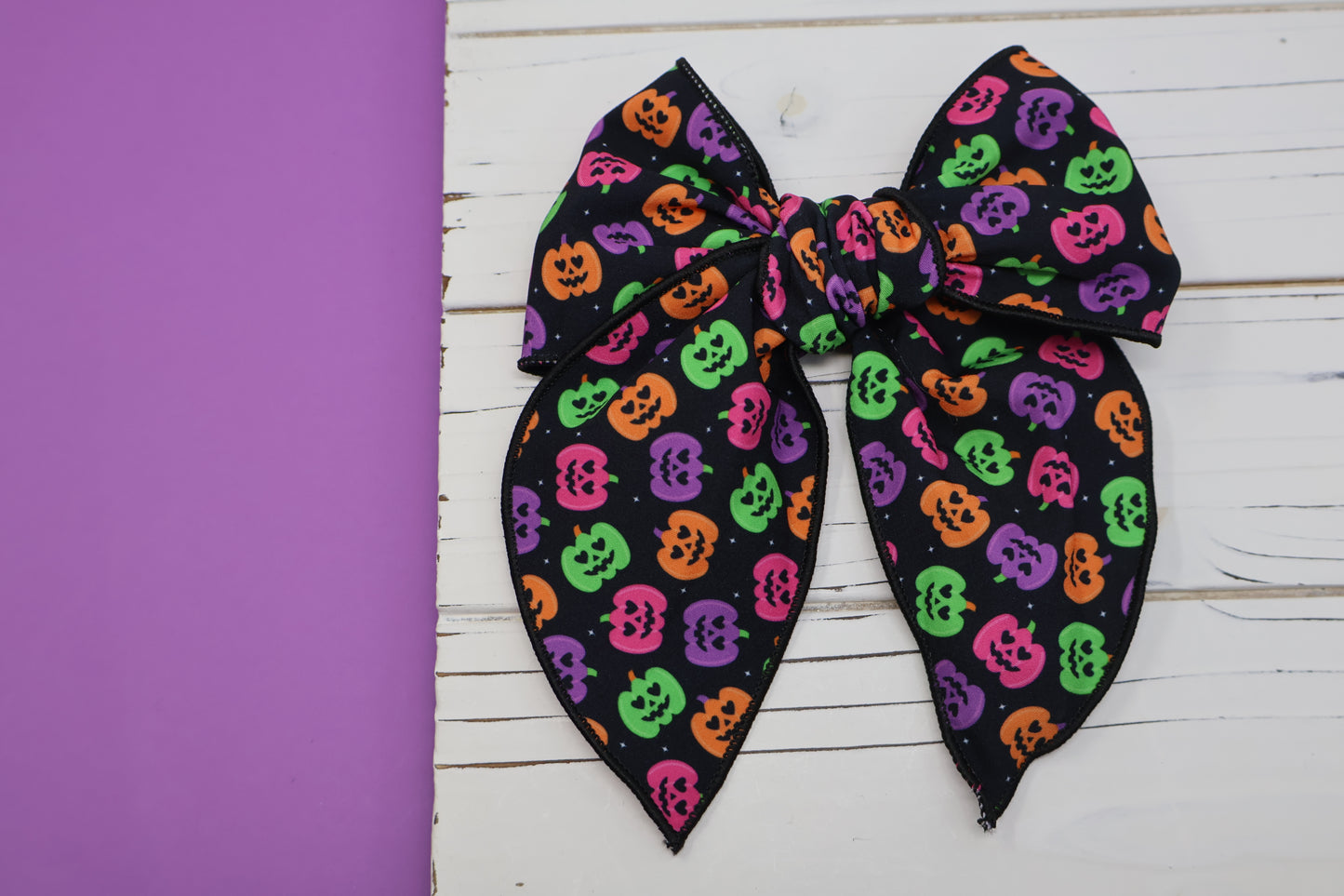 LIGHT UP Bright Pumpkins XL Remi Bow (Alligator Clip Only)