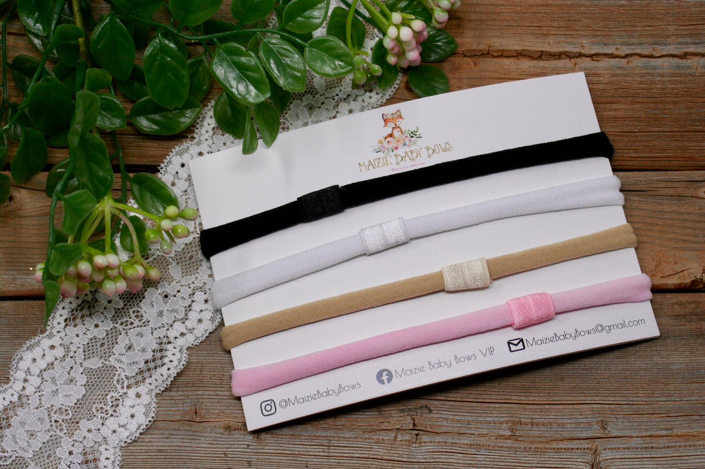 These soft nylon headbands have an added loop, allowing you to order bows on clips, but continue to wear them on headbands.