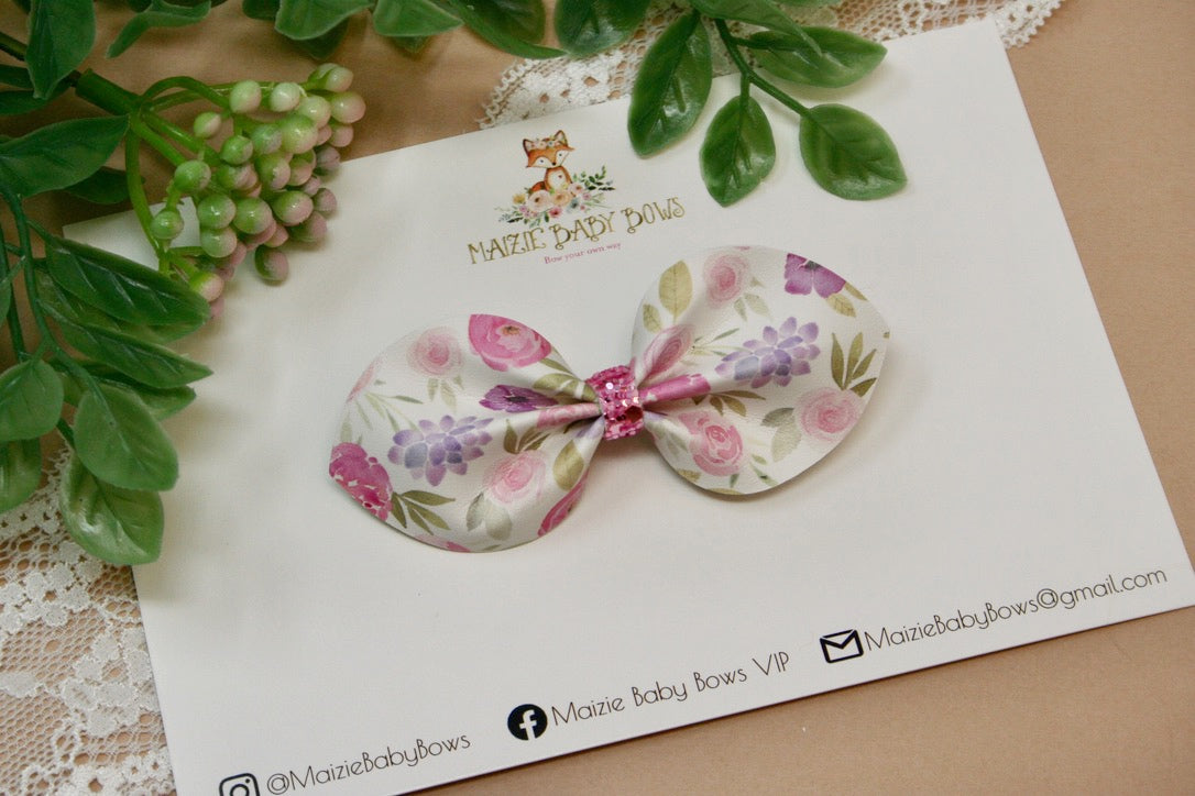 Pink & Purple Peonies Baby Jade Bow