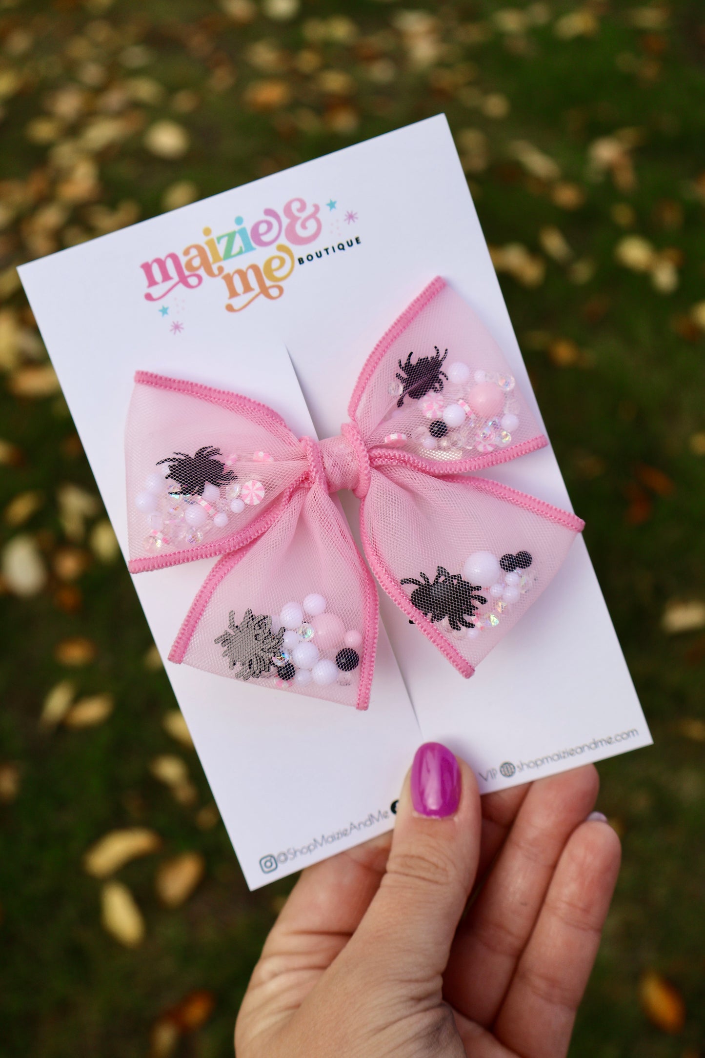 Pink Spiders Shaker Avery Bow (Alligator Clip Only)