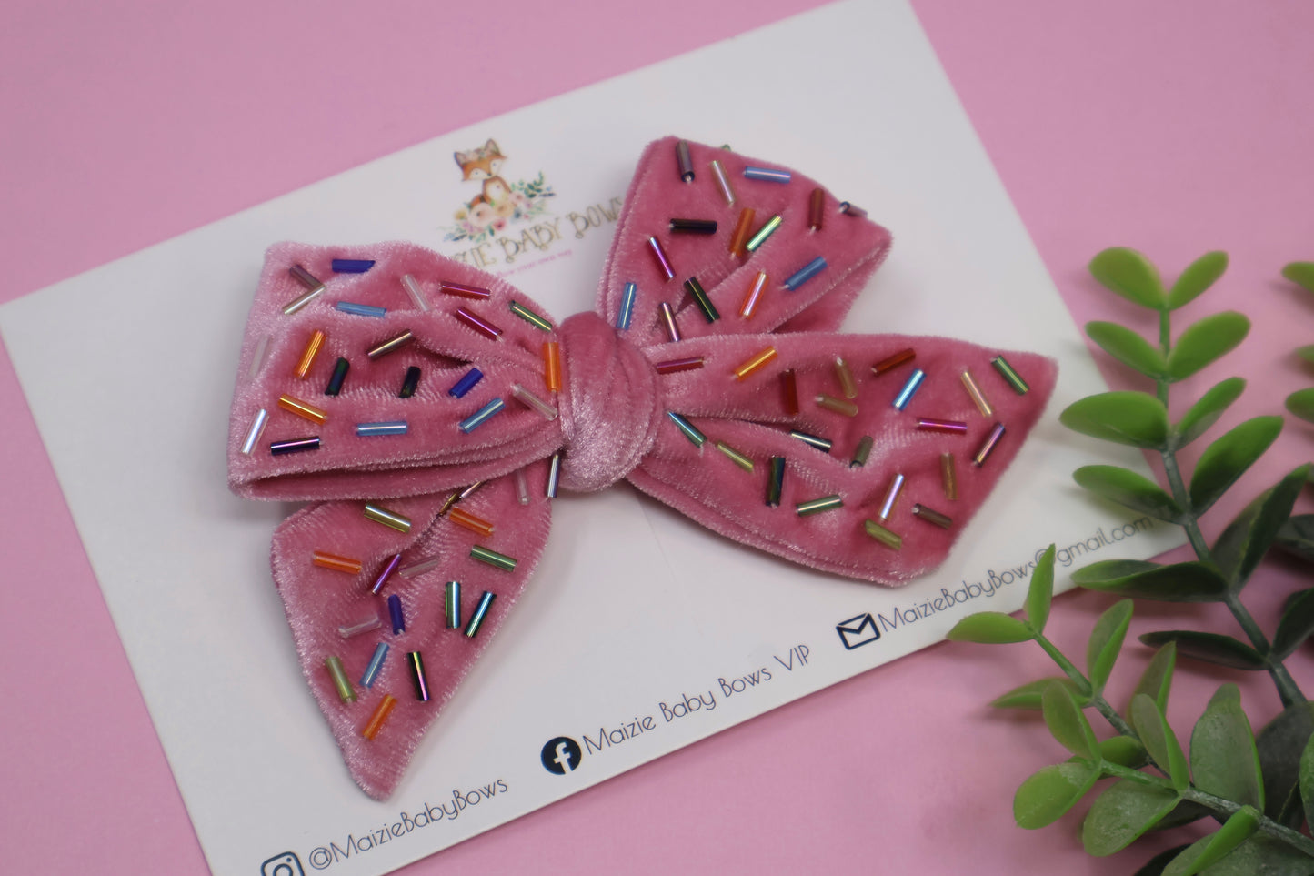 Pink Sprinkles Embellished Velvet Large Everly Bow (Alligator Clip Only)