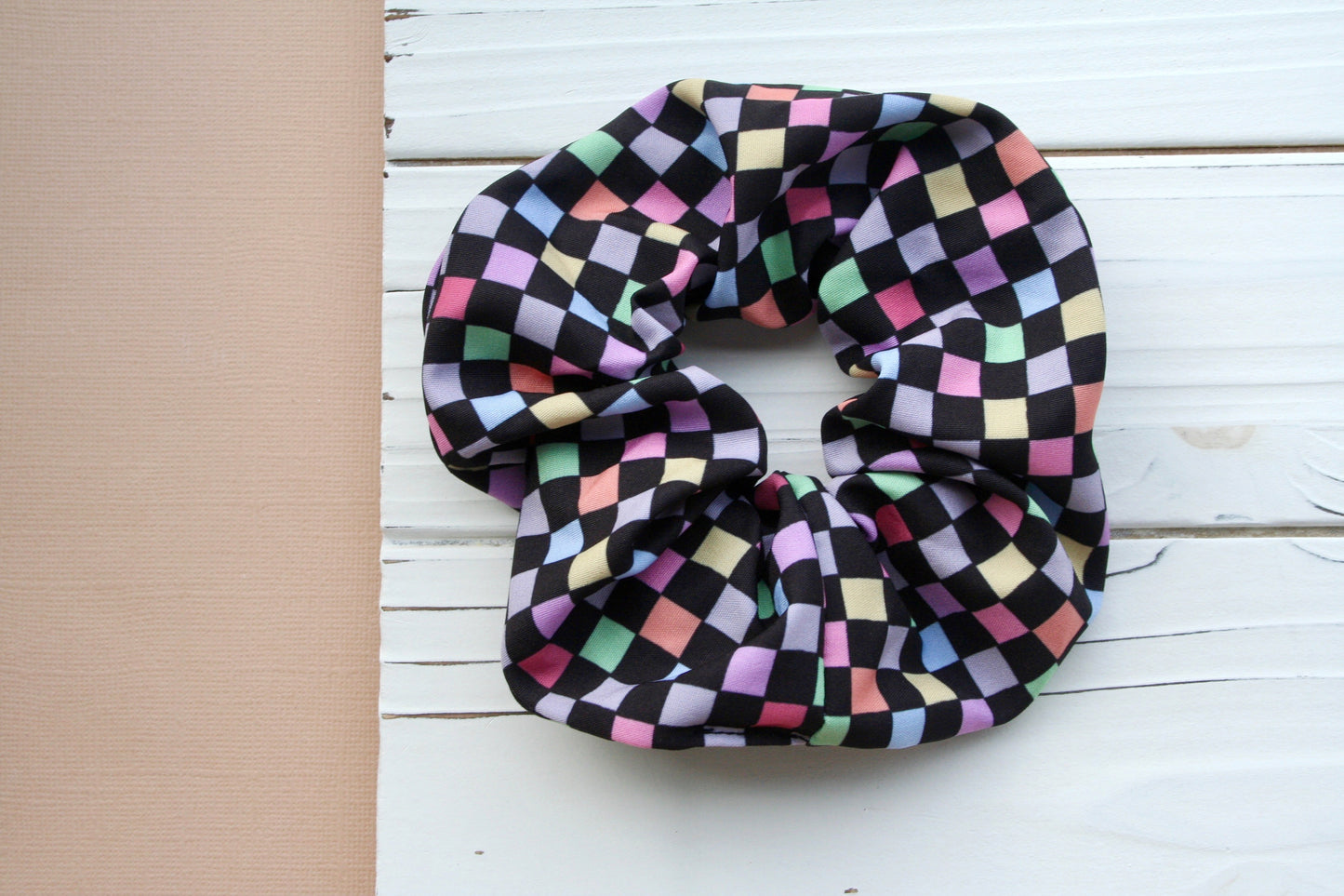 Rainbow Checkerboard Scrunchie